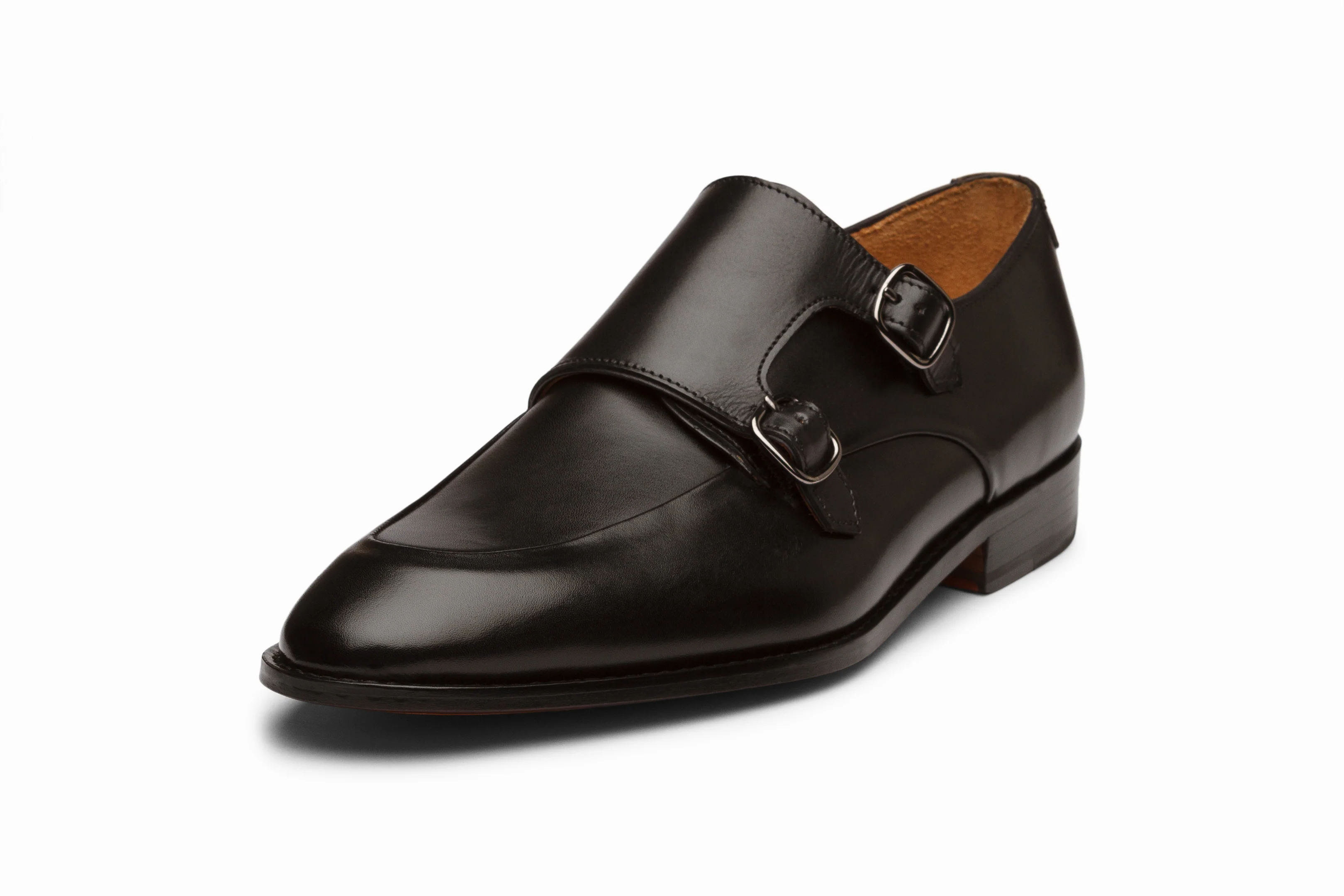 Derby Monk with Double Strap features Blindstitch Detailing on the vamp for a clean minimal look, Hand Built Argentinean Leather Sole, Black Calfskin Leather, and Rich Tan Cow Leather Lining.