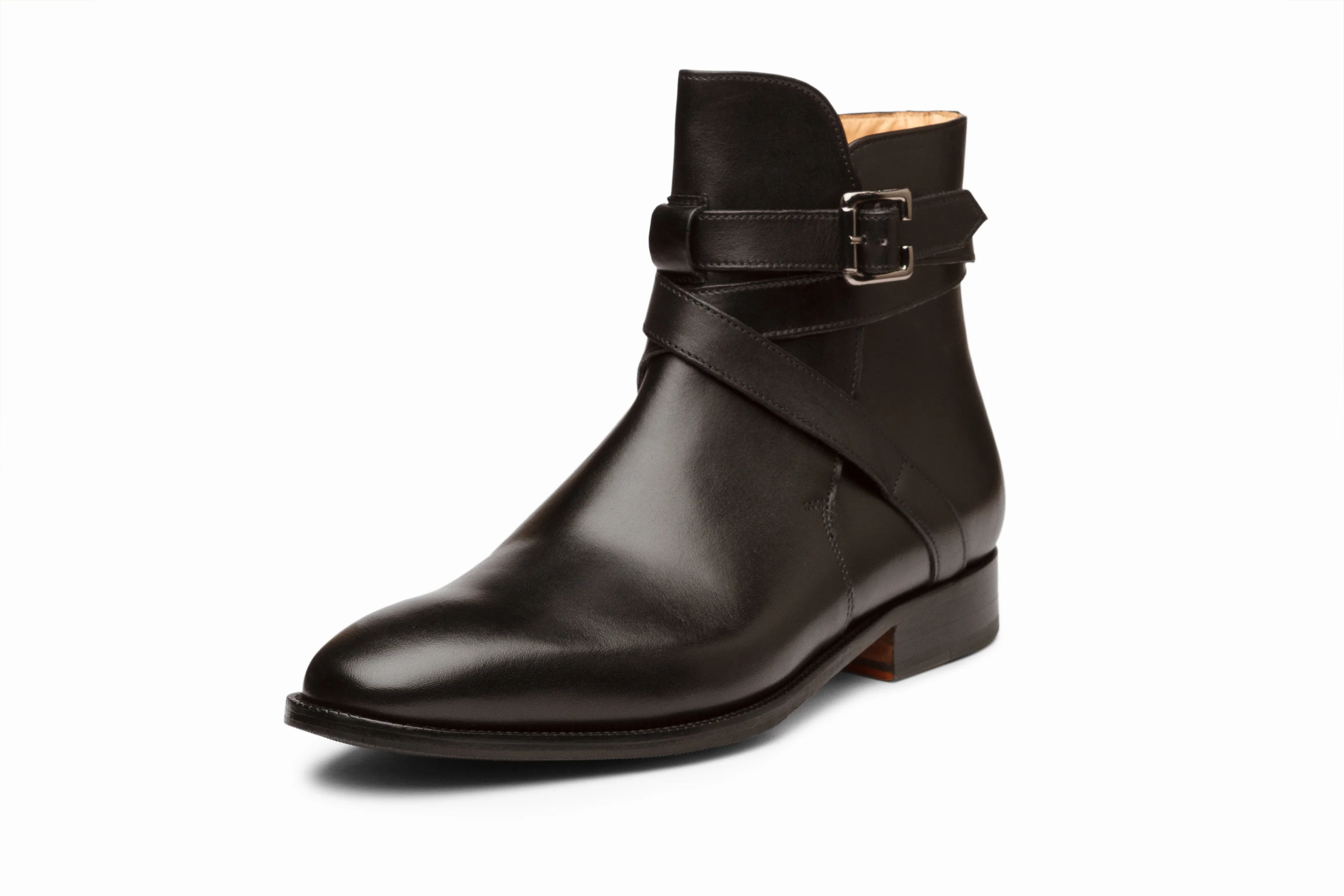 Leather Jodhpur Boot features Hand Built Argentinean Dual Tone Leather Sole with Rubber Protector, Black Calfskin Leather Uppers, and Rich Tan Cow Leather Lining.