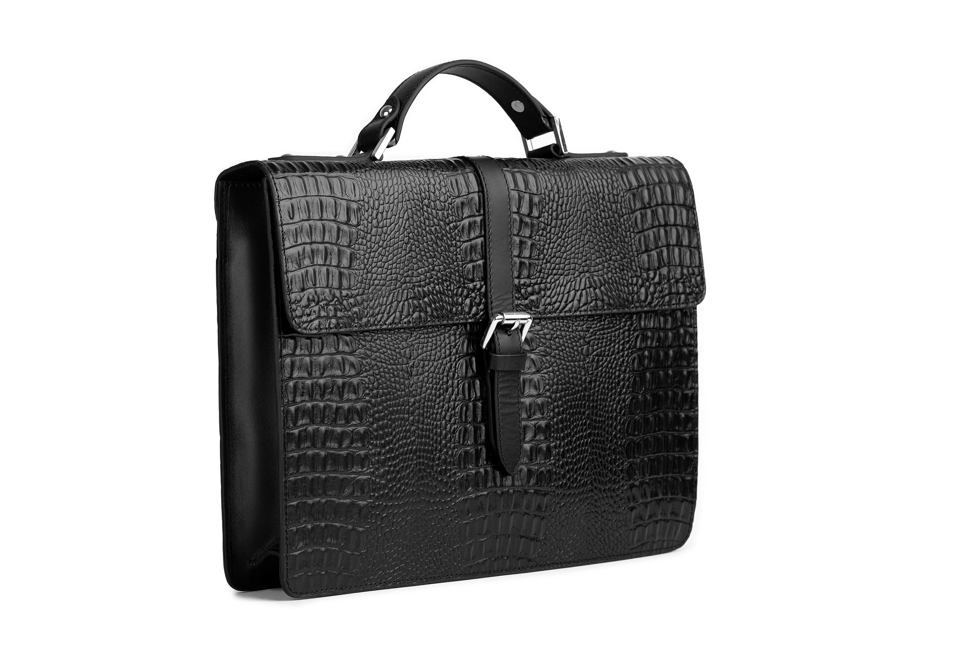 Leather Laptop Briefcase - Crocodile Pattern Black