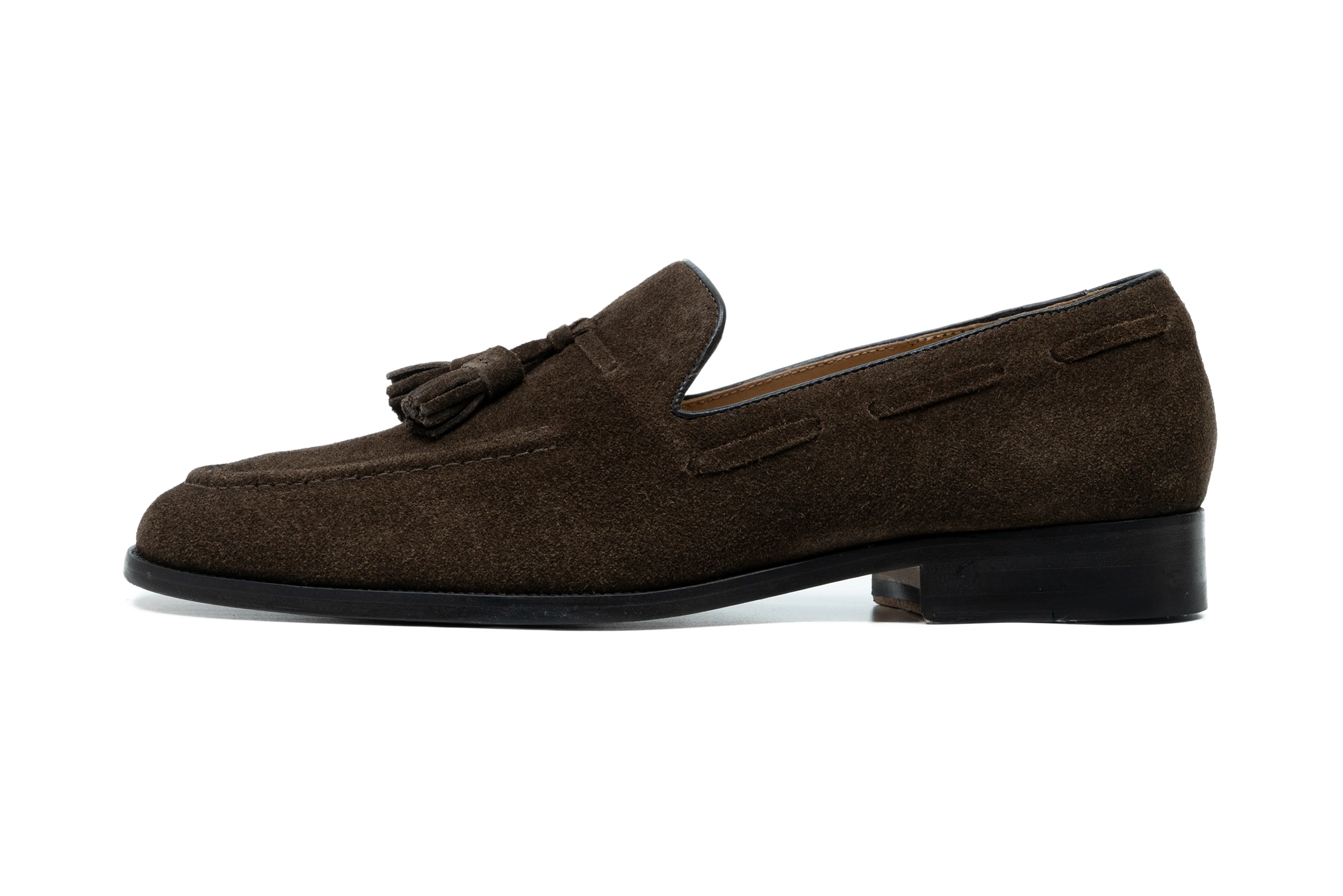 Tassel Loafer features Hand Built Argentinean Leather Sole, Dark Brown Suede Calfskin Leather Uppers, and Rich Tan Cow Leather Lining.