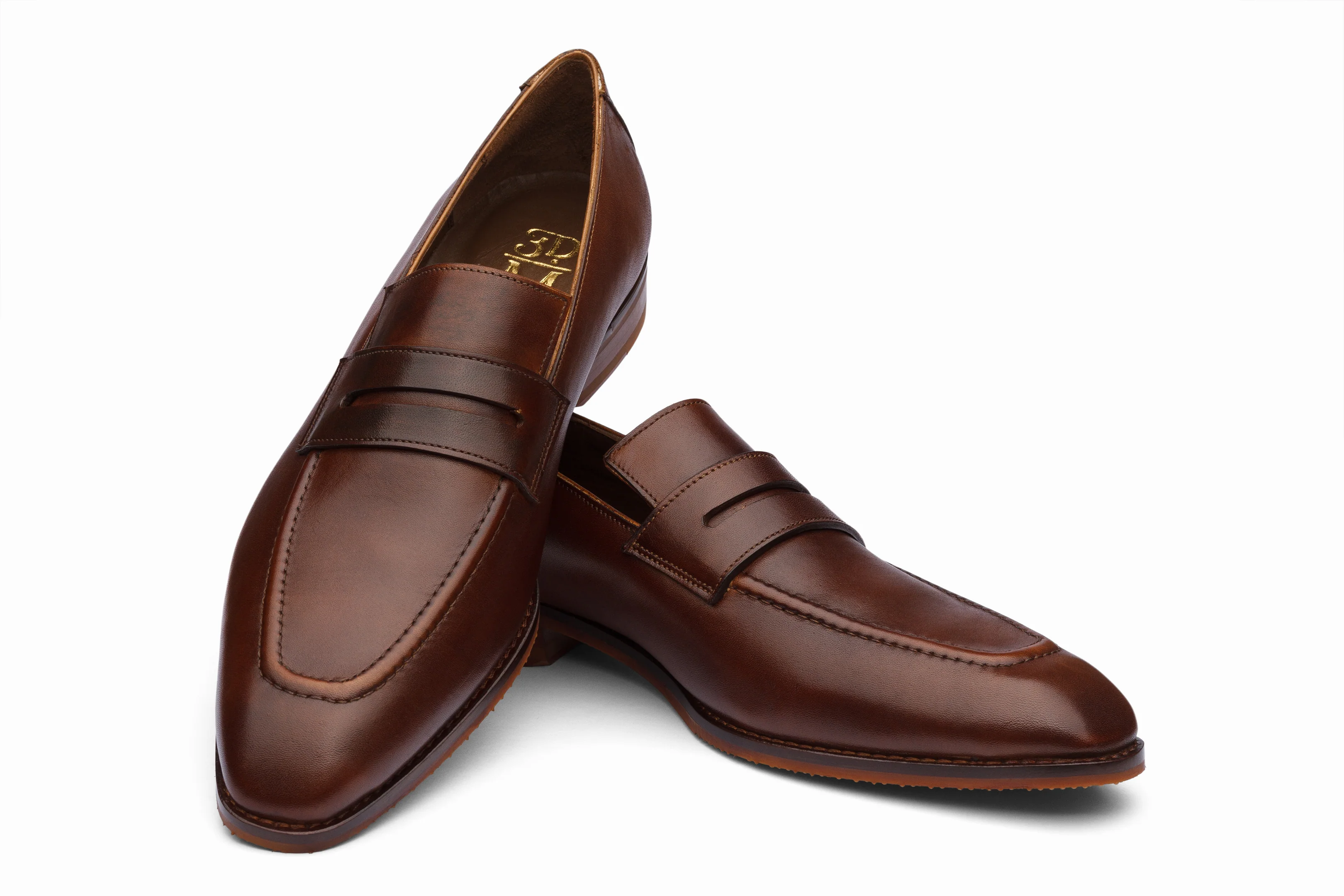 Vegano Penny Loafer features High-Grade Eva Sole, Hand-painted Tobacco Full Grain Calfskin Leather, and Brown Leather Lining.