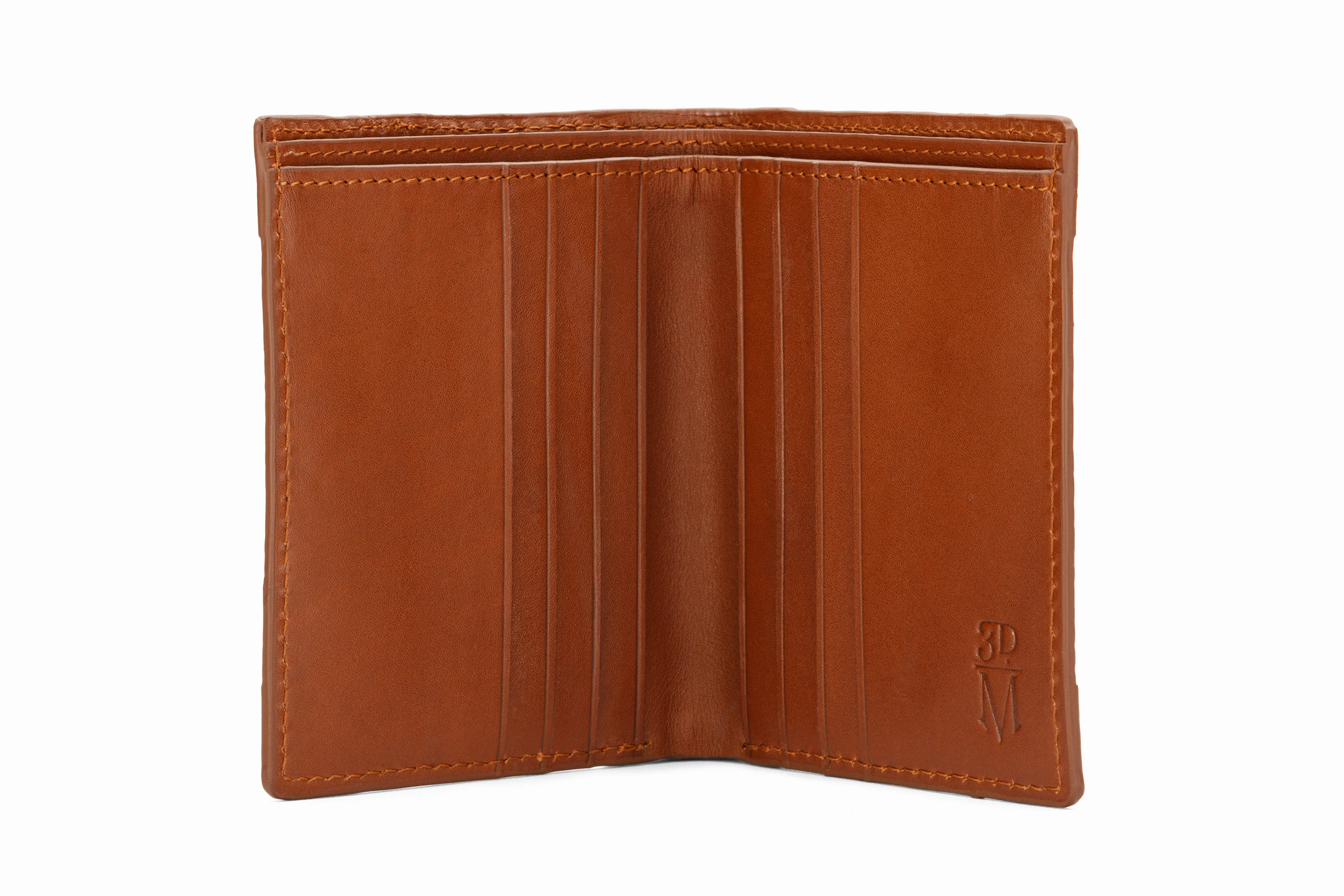 An epitome of expert craftsmanship, this 3DM's Croc Print Brown wallet exudes sophistication and elegance. Showcasing a sleek silhouette with embossed logo at interior, the bi-fold wallet has multiple inner slots to accommodate currency notes, business and credit cards in a safe manner. Made of 100% genuine calf leather, it assures a luxe effect.