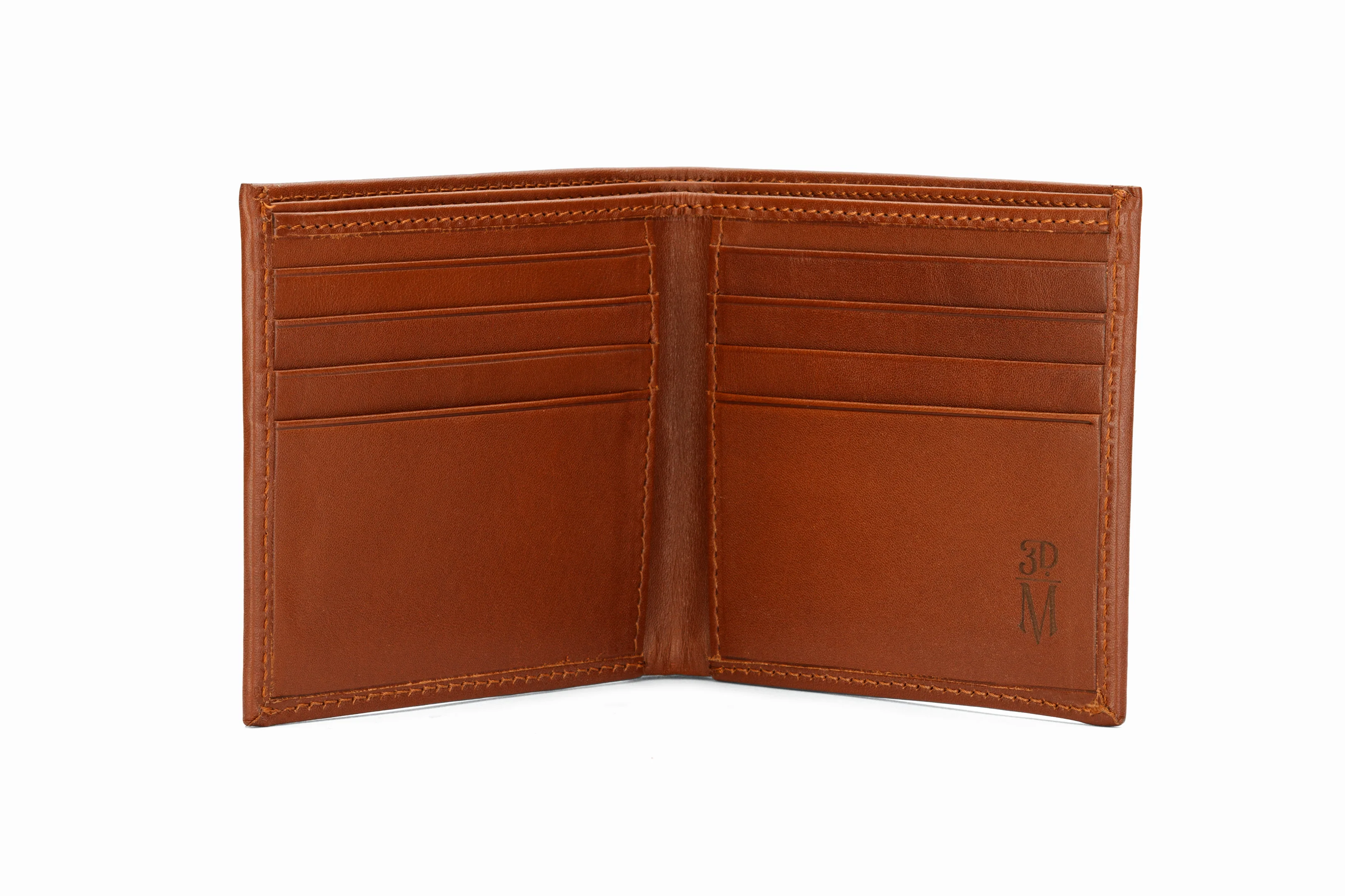 An epitome of expert craftsmanship, this 3DM's Tan wallet exudes sophistication and elegance. Showcasing a sleek silhouette with embossed logo at interior, the bi-fold wallet has multiple inner slots to accommodate currency notes, business and credit cards in a safe manner. Made of 100% genuine calf leather, it assures a luxe effect.
